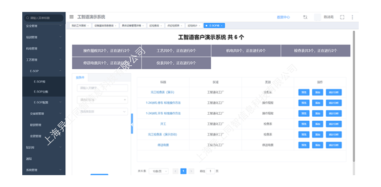 工智道工藝管理系統幫助企業將先進的標準操作規程執行落地;全流程電子化監管變更過程,控制變更風險;實時掌握聯鎖狀態、投用率,提升聯鎖現場管控及預警;根據崗位自動抓取交接班信息匯總生產簡報,滿足交接班業務中流程合規、信息匯總和過程記錄的管理需求。