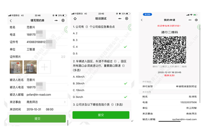 工智道智能訪客系統(tǒng)基于微信小程序為工廠及訪客提供一套便利的智能訪客管理工具。為訪客提供預約和進廠HSE培訓,讓訪客更便捷地出入化工廠,提升化工廠對外界訪客形象;同時對內,提升訪客來訪工作的效率和規(guī)范程度,提升HSE的管理水平。工智道智能訪客系統(tǒng)廣泛適用于各類化工生產企業(yè)。