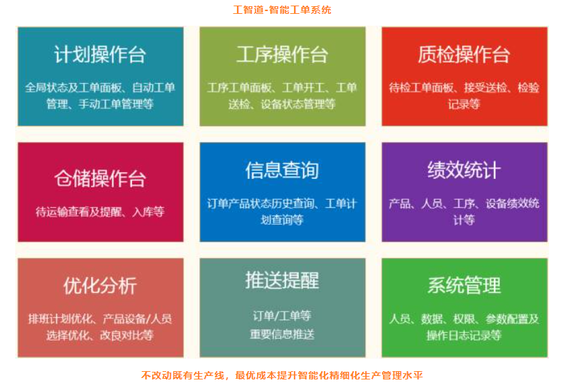 工之道-智能工單系統是針對批次式生產企業中廣泛存在的“產品品類多、工序變化多、設備型號雜、智能改造難”等問題而開發的,是一套以移動互聯網、云計算、大數據等技術為工具,以幫助企業顯著提升信息化管理水平、人員效率、設備運轉率和生產穩定性為目標,聚焦工單生產過程管理的信息化系統。具有信息實時互聯、過程可控可追溯、績效可視化、生產智能化標準化、生產預測科學化等特點和優勢。
