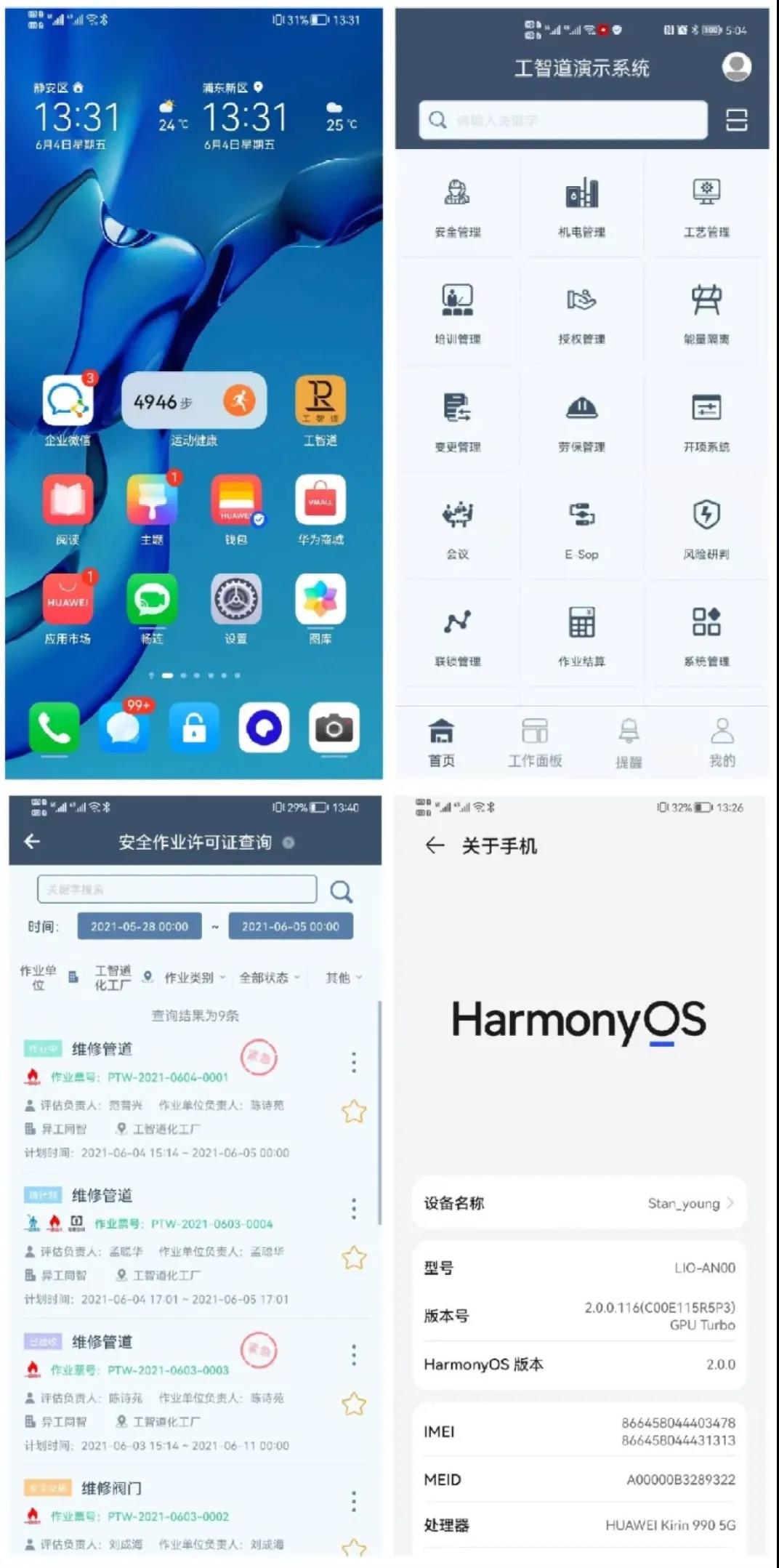 6月2日華為正式發布鴻蒙HarmonyOS2.0系統,工智道“好用的化工數字化”平臺工程師小伙伴第一時間進行適配測試,直呼鴻蒙流暢絲滑、值得擁有,并驗證工智道系統在鴻蒙上運行流暢。